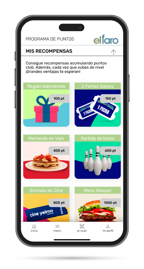 Solo por ser miembro del Club El Faro, tendrás acceso a sorteos exclusivos, así como regalos que activaremos para ti. Además, podrás ver las recompensas que has conseguido con tus puntos.