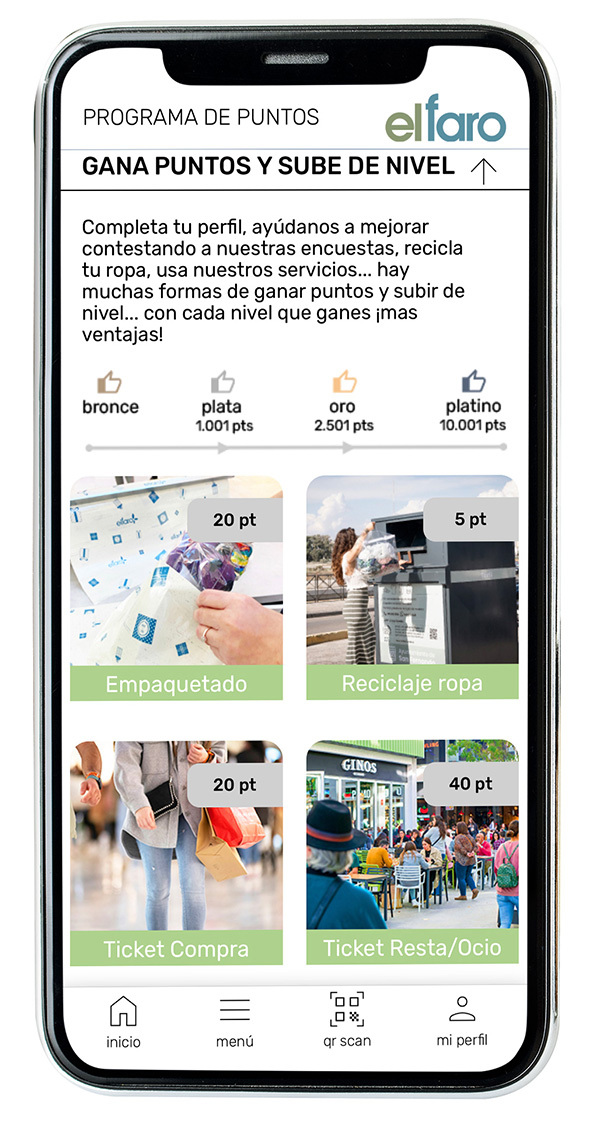 Cada acción te permite ganar puntos, los cuales puedes canjear por recompensas y subir de nivel para desbloquear más ventajas.