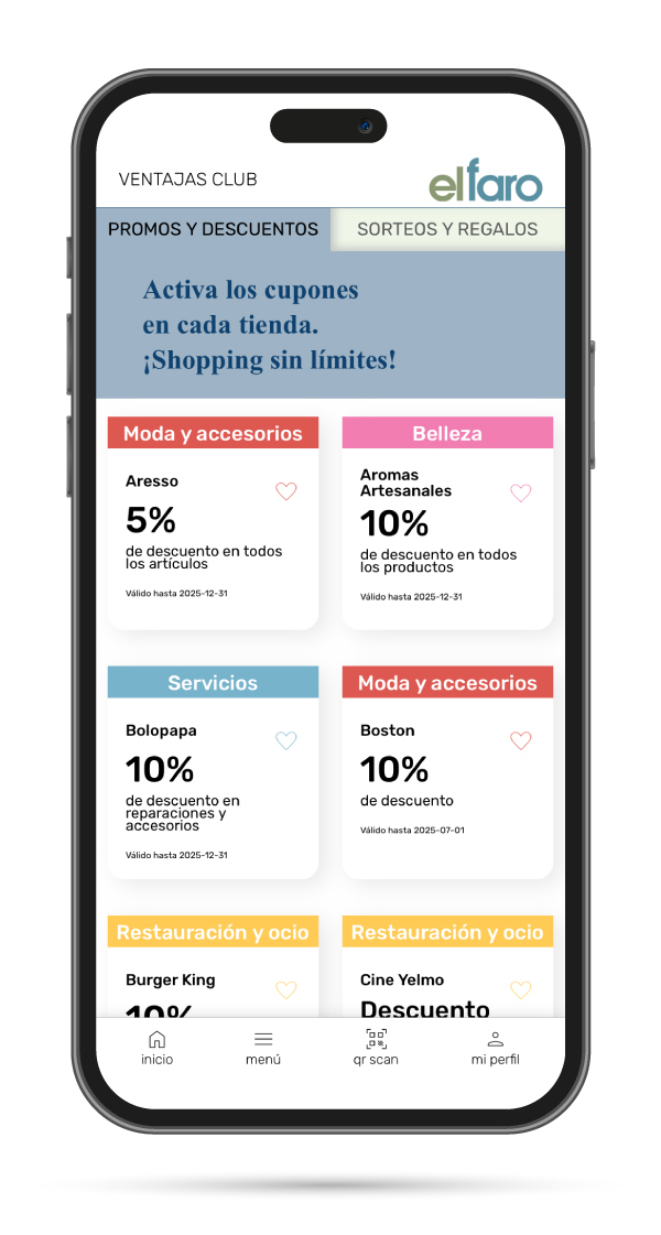 El Faro Club es tu espacio exclusivo de ventajas, servicios y recompensas únicas. Tu APP más fiel.
